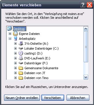 Markieren Sie die Verknüpfung indem Sie sie mit der linken Maustaste